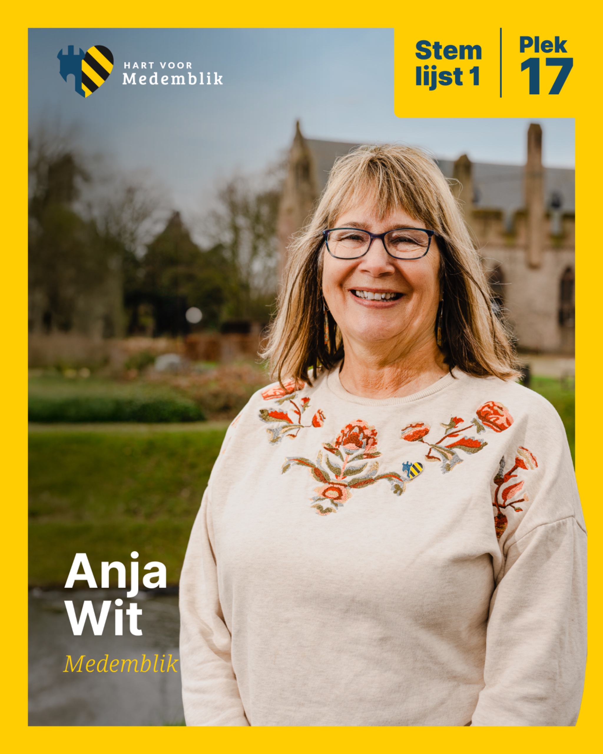 Anja Wit, woonachtig in Medemblik en kandidaat op plek 17, is geen onbekende in de lokale politiek. Ze staat bekend als een echte doener met oog voor de menselijke maat. Eerder was zij al de drijvende kracht achter het succesvolle Seniorenboekje, omdat ze zag dat belangrijke informatie veel ouderen niet bereikte door de digitalisering.