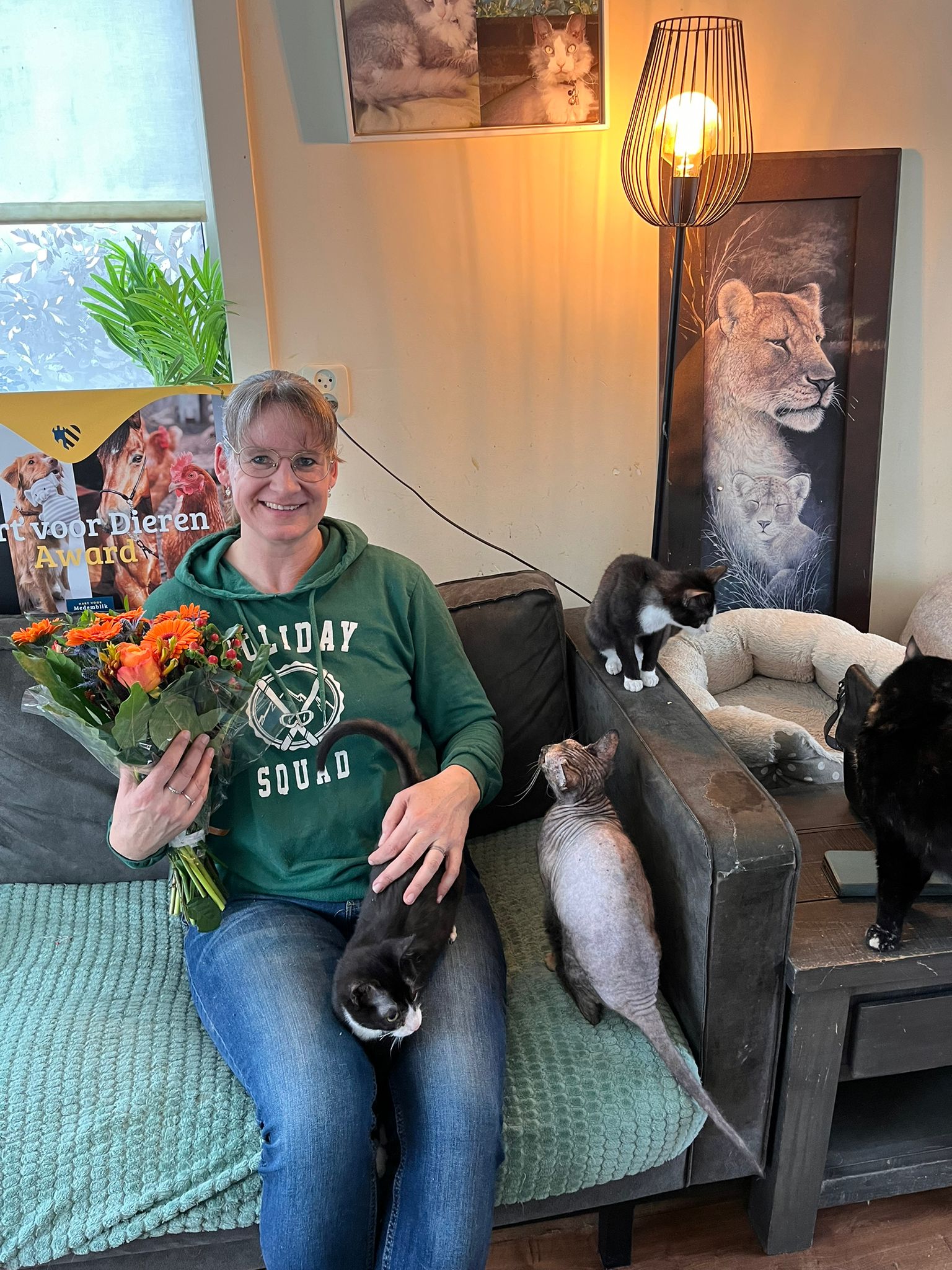 Veel van de katten die zij heeft opgevangen, hebben nu een fijn thuis gevonden via het netwerk van Myra en daarom heeft ze deze prijs gevonden.